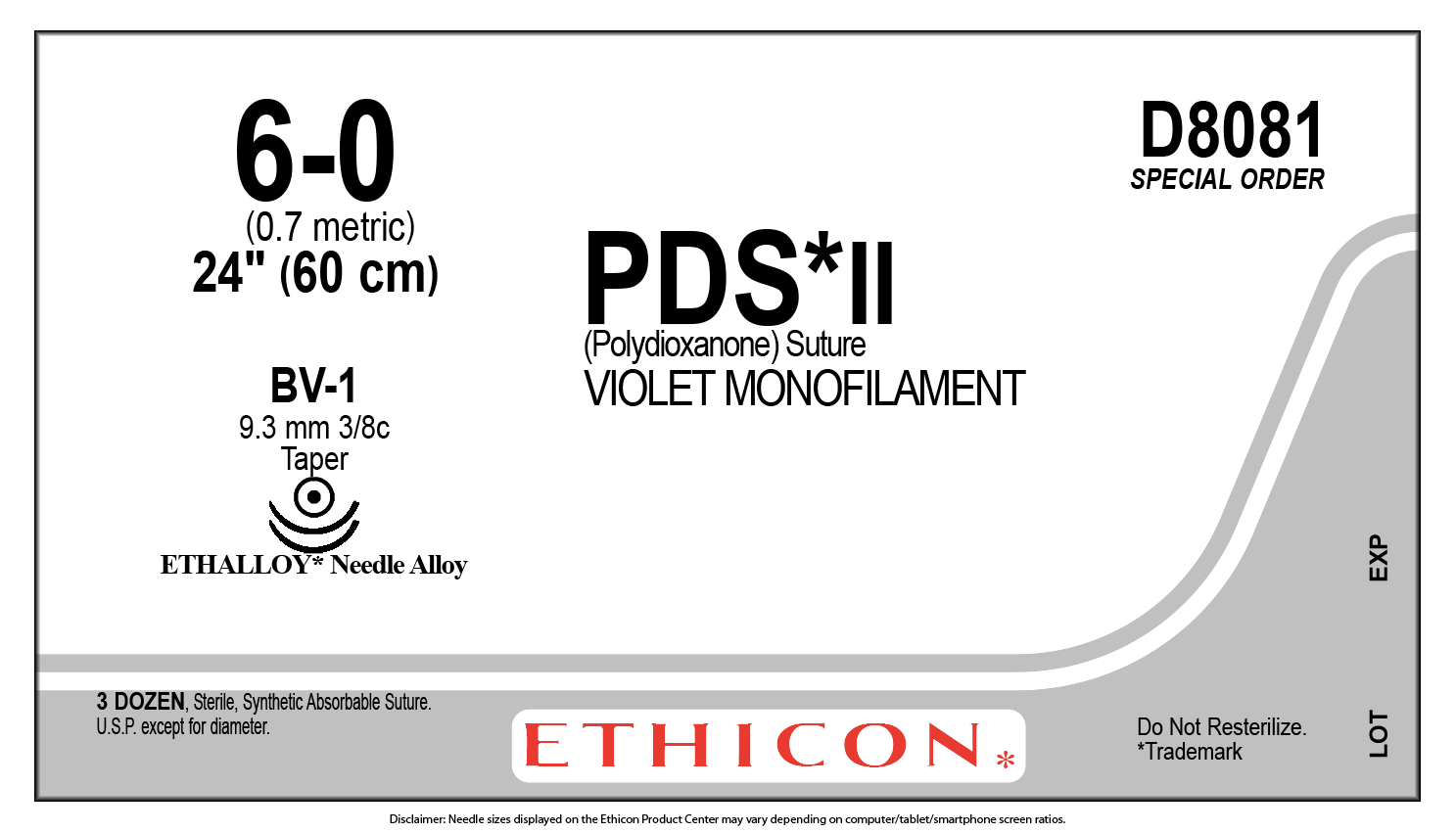 The safety and effectiveness of PDS II sutures have not been established in neural tissue, adult cardiovascular tissue or for use in microsurgery. Under certain circumstances, notably orthopaedic procedures, immobilization by external support may be employed at the discretion of the surgeon. Do not resterilize. Discard open packages and unused sutures. Do not use after expiration date. For complete product details, please see Instructions for Use.